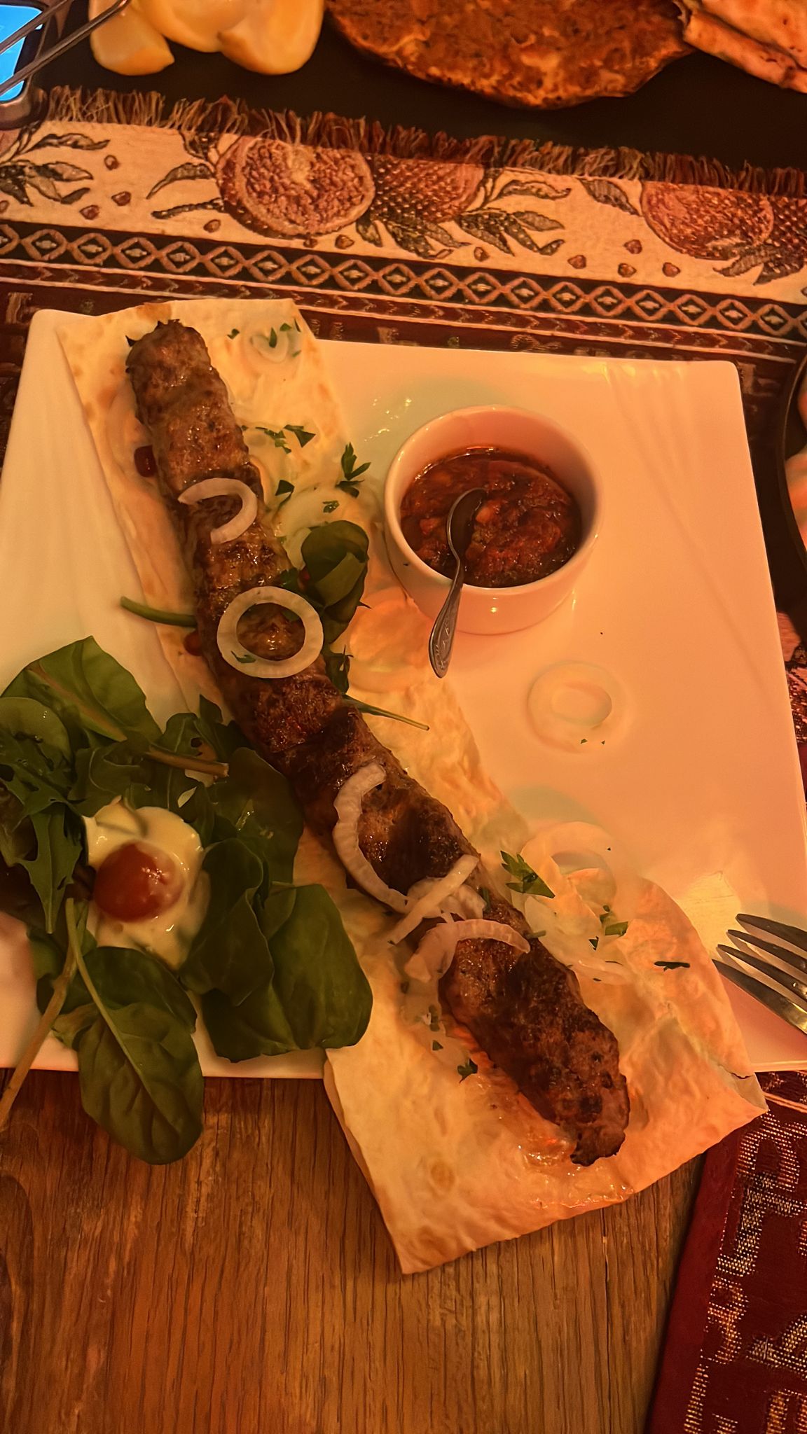 Nous avons été accueillis avec une hospitalité des plus chaleureuses. L'ambiance était un charmant mélange de tradition et d'élégance, avec une atmosphère réconfortante qui semblait être un petit bout d'Arménie ici même dans notre ville. Le menu était un voyage délicieux à travers la cuisine arménienne. Les plats principaux étaient tout aussi impressionnants. Le khorovats (brochettes de viande grillée) était succulent et juteux. Nous y retournerons avec grande joie